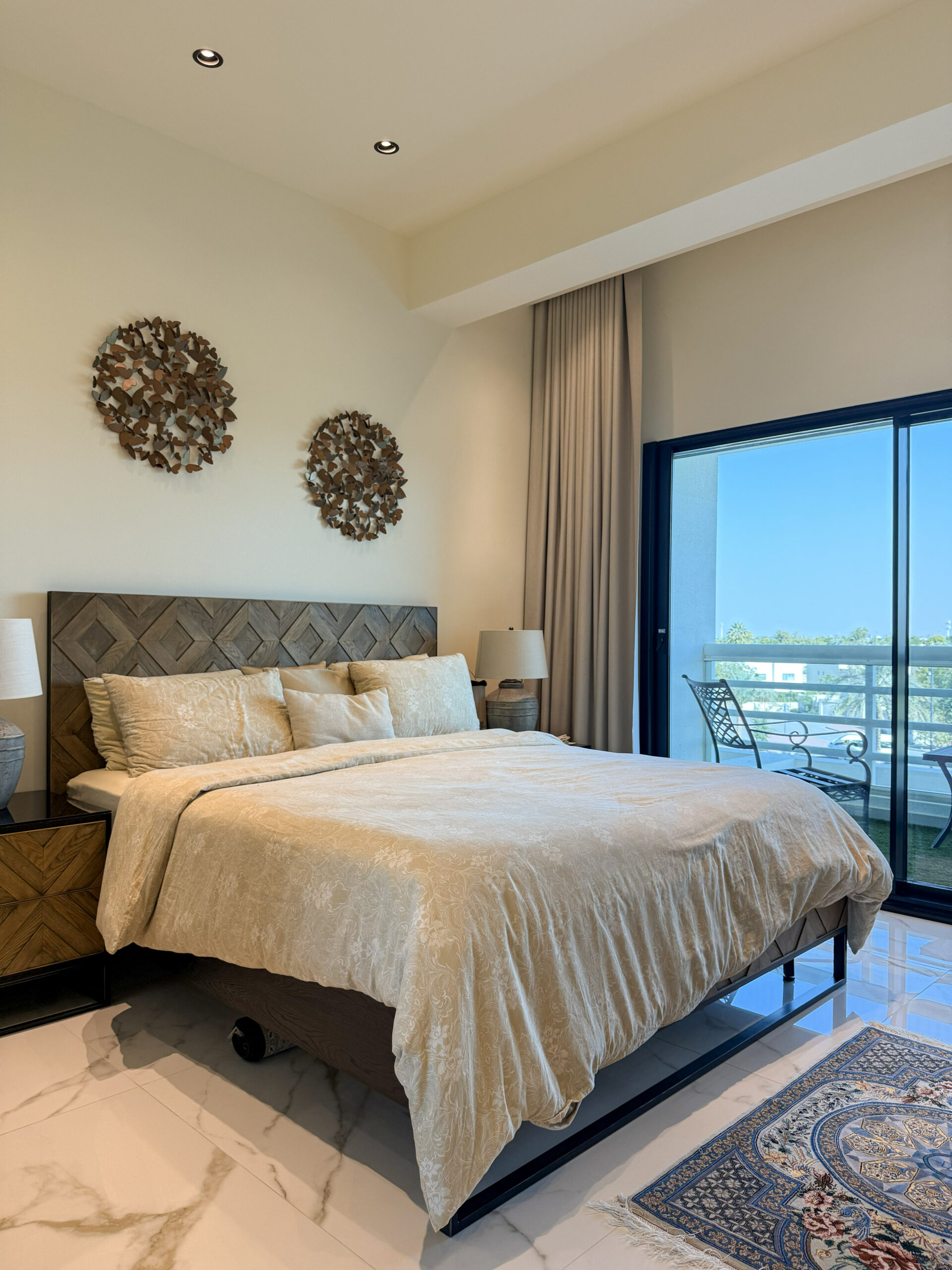 Seamless transitions between bedroom, dressing area, and en-suite spaces ensure visual continuity and functional flow. Clean-lined joinery, concealed storage, and tailored wall treatments contribute to a minimalist yet luxurious aesthetic. The neutral tones—ranging from warm beiges to soft greys—provide a timeless foundation that complements various textures and premium finishes.