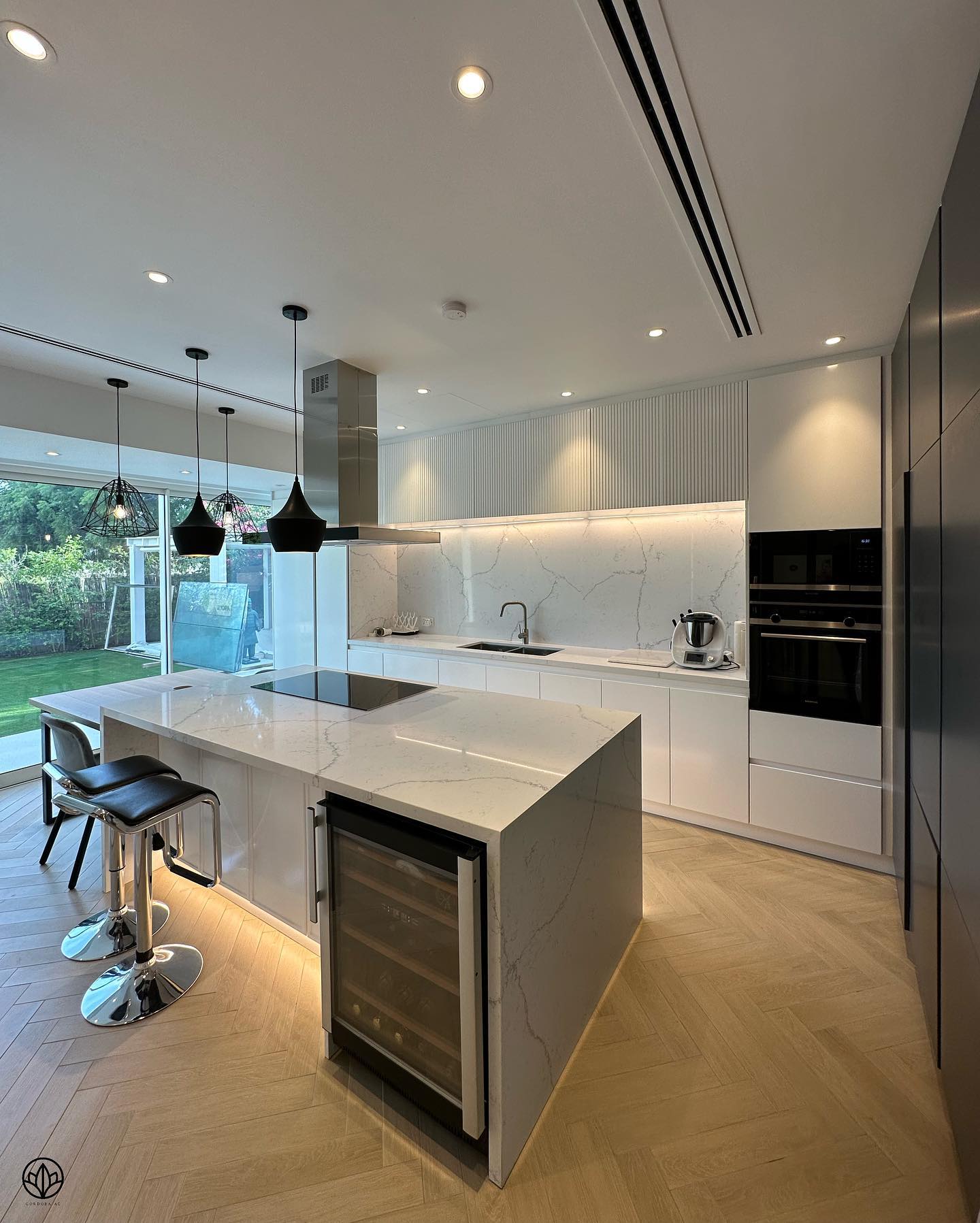 A contemporary kitchen is a sleek and functional space that embraces the latest design trends while focusing on clean lines, minimalism, and high-tech features. This style combines practicality with aesthetics, offering a kitchen that is as beautiful as it is efficient. It prioritizes open spaces, light, and innovative materials, making it a perfect environment for modern living.