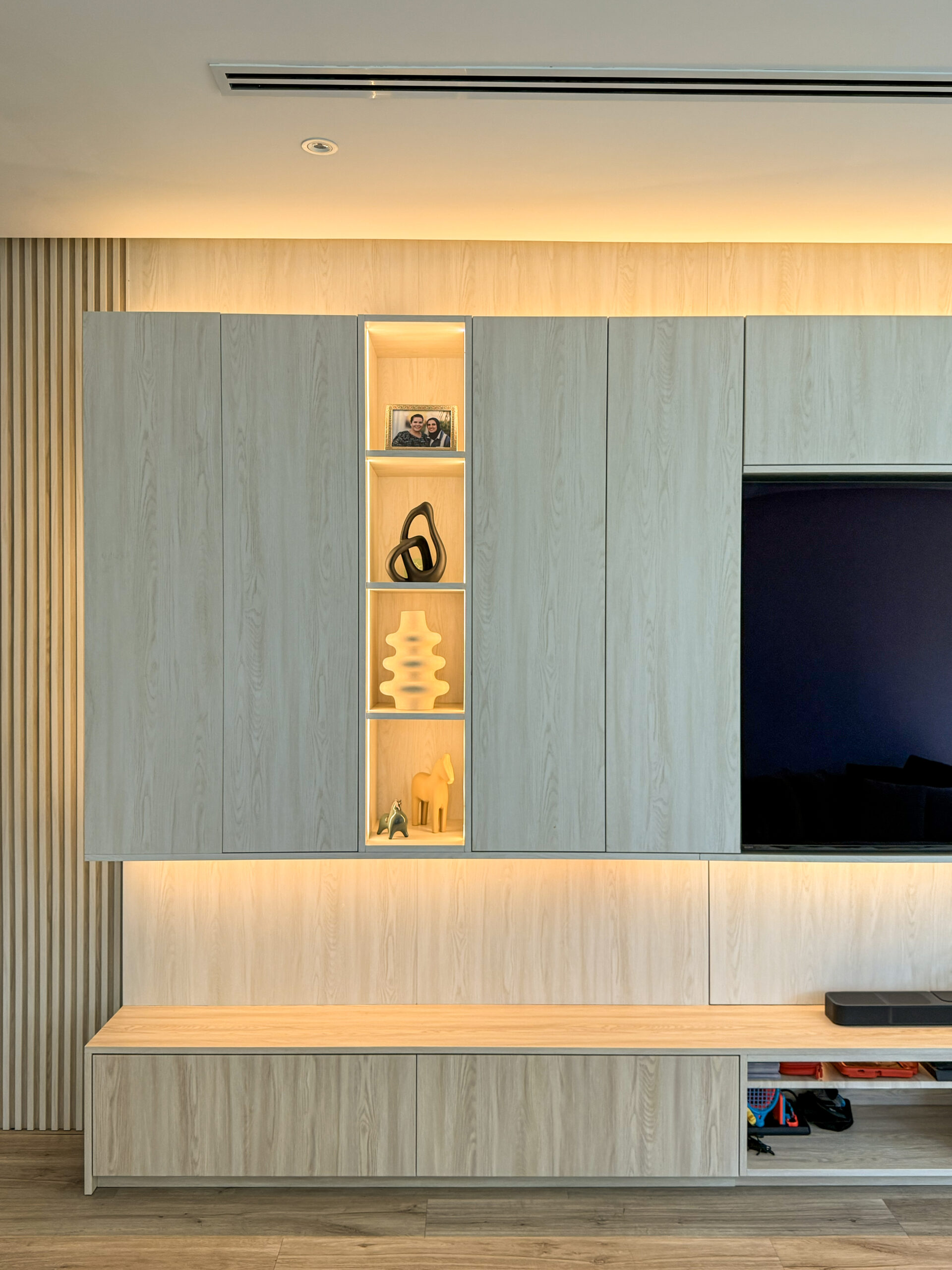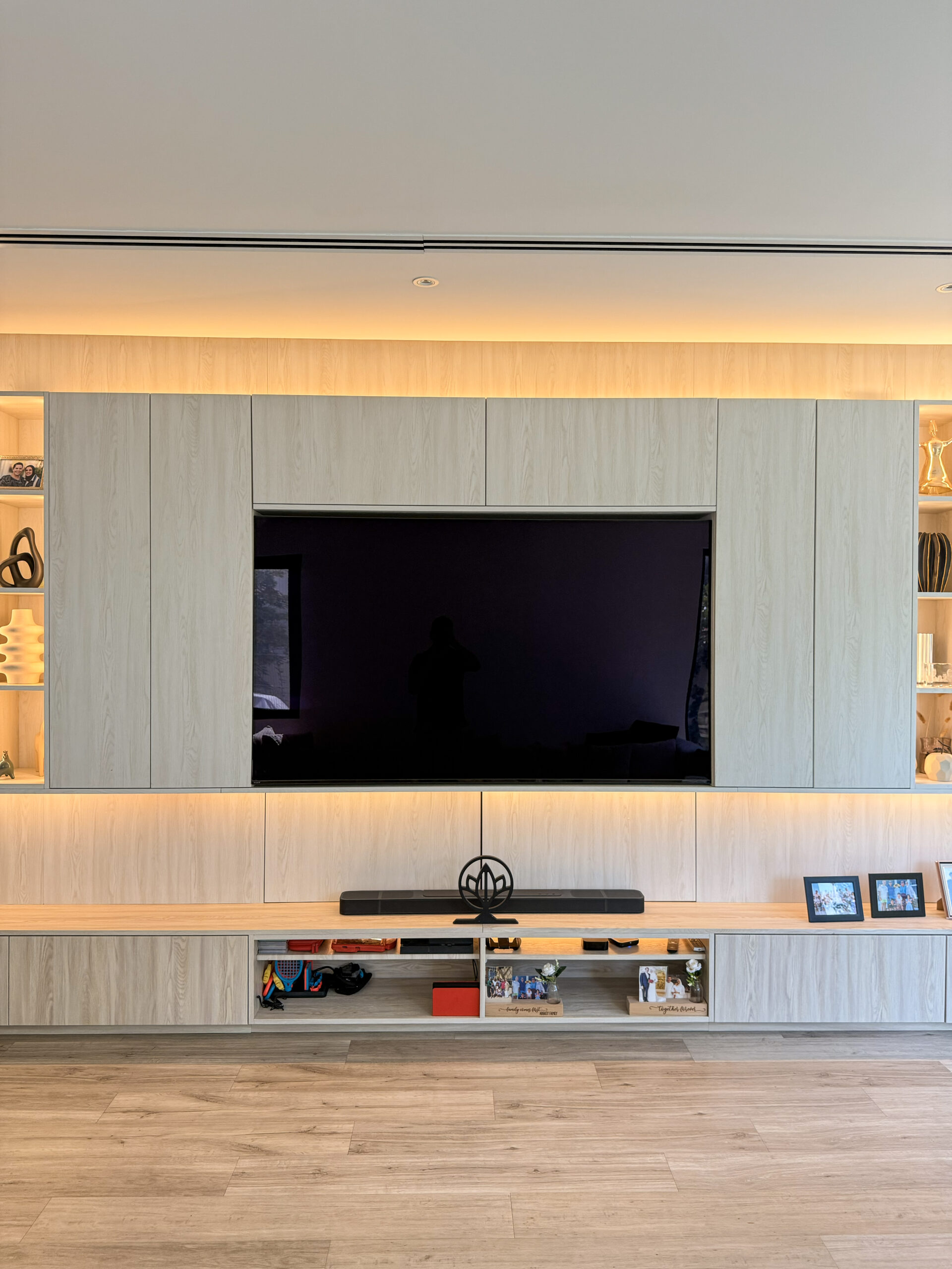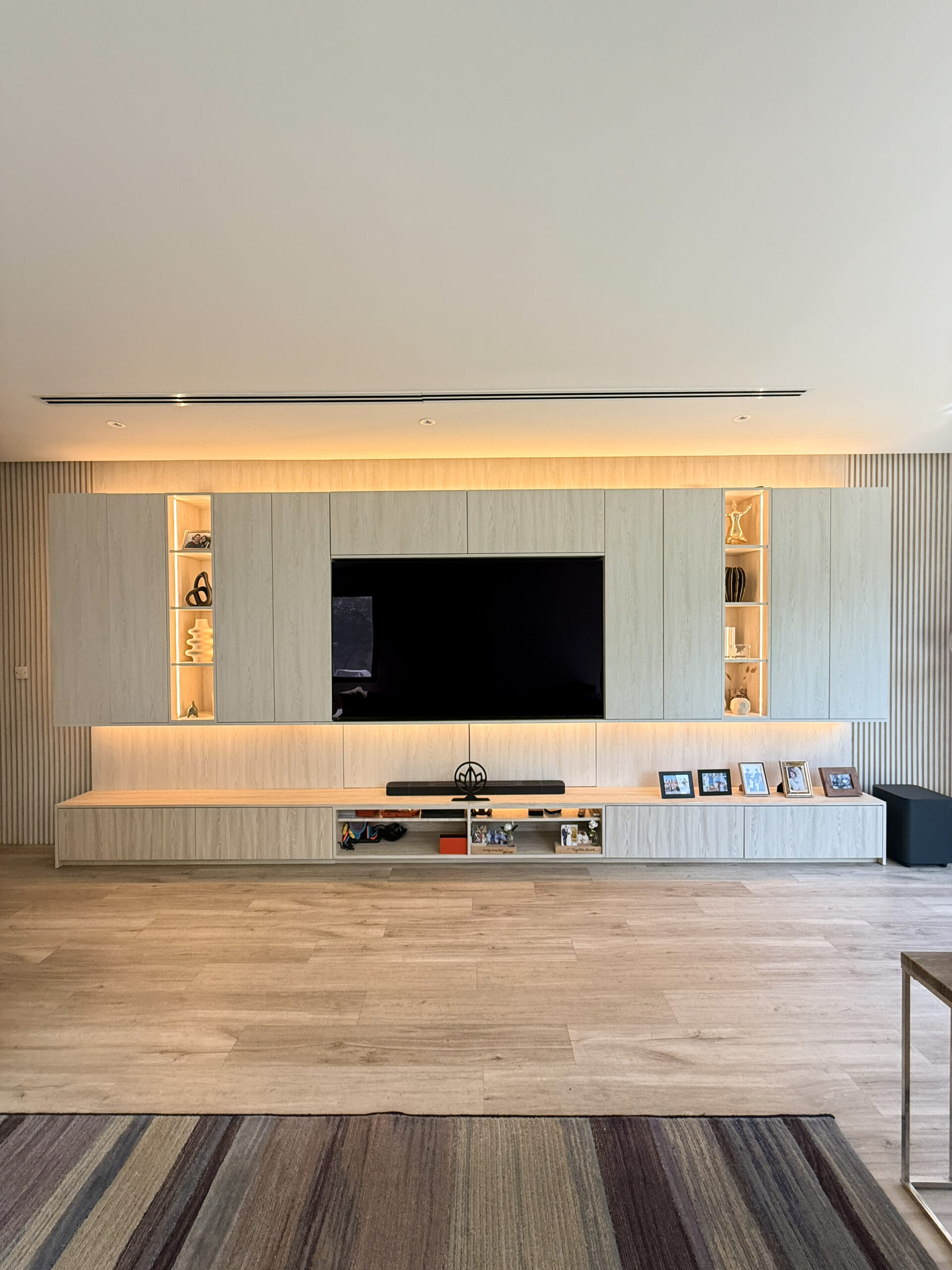 Elevate your living space with the Modern Wood TV Unit | Tailored Wall Paneling & Display Cabinetry, a refined feature that blends contemporary design with practical living room functionality. This bespoke TV unit is thoughtfully designed to create a cohesive focal wall, combining warm wood finishes with custom wall paneling and integrated display cabinetry.